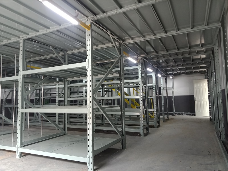 機械存儲指使用叉車、穿梭車等機械進行存取,如:橫梁式貨架、駛?cè)胧截浖?、穿梭式貨架等?br />